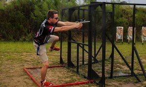 A 15-year-old boy fires an assault rifle at human-shaped targets while walking through a desert shooting range. Whipping a pistol from a holster, another teen shoots rapidly at man-shaped targets that pop from behind barrels.